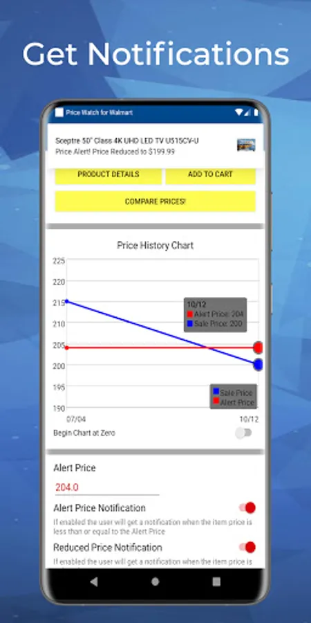Scan Barcodes and Add products from Walmart.com to the watch list and track their prices (USA only). You will get notified when the price drops to the price you select. Price history tracking starts the day an item is added to the watch list. Enjoy the free Walmart price tracker.