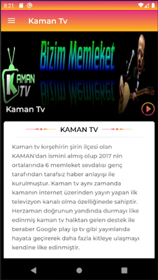 With the charming town of Kaman Kırşehir TV is the first local television as a wedge to wedge Launched from the internet TV broadcast unbiased understanding of all began broadcasting in Turkey.