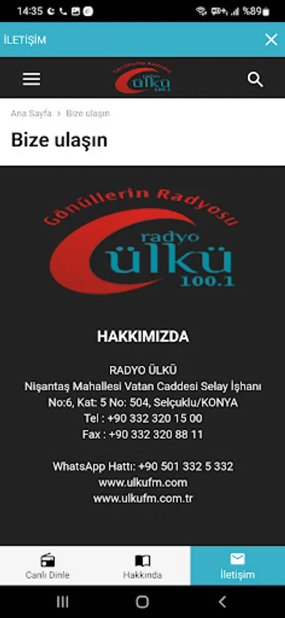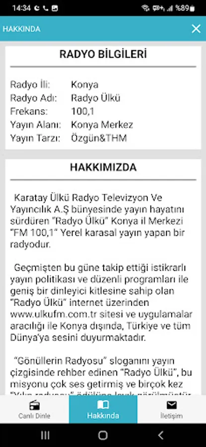 In Konya, Karatay Ülkü TV and Radio Broadcasting Corporation operating in an "Radio Ülkü", Konya and around a local radio terrestrial broadcasting. Hourly news, Turkish Folk Music, Turkish Music, alongside the stream consisting of original music Turkish music, besides cultural programs mainly on Fridays and live broadcasts are made on special occasions.