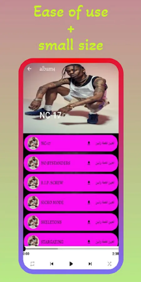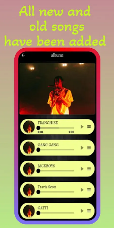 The latest music the most complete collection of Travis Scott All Songs 2023 starting from the old until now can play directly for free all songs to listen to the app easy to use light because it is not offlin