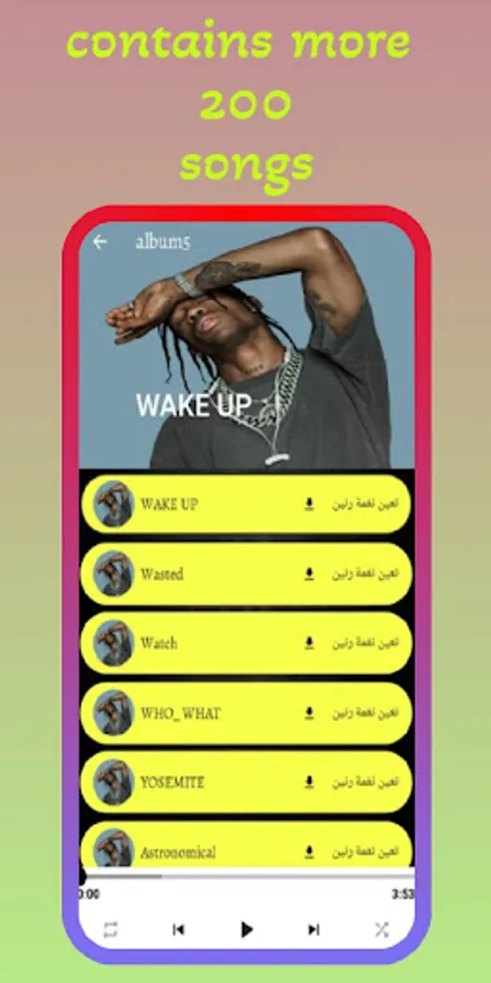 This application provides a collection of songs from Travis Scott All Songs 2023.