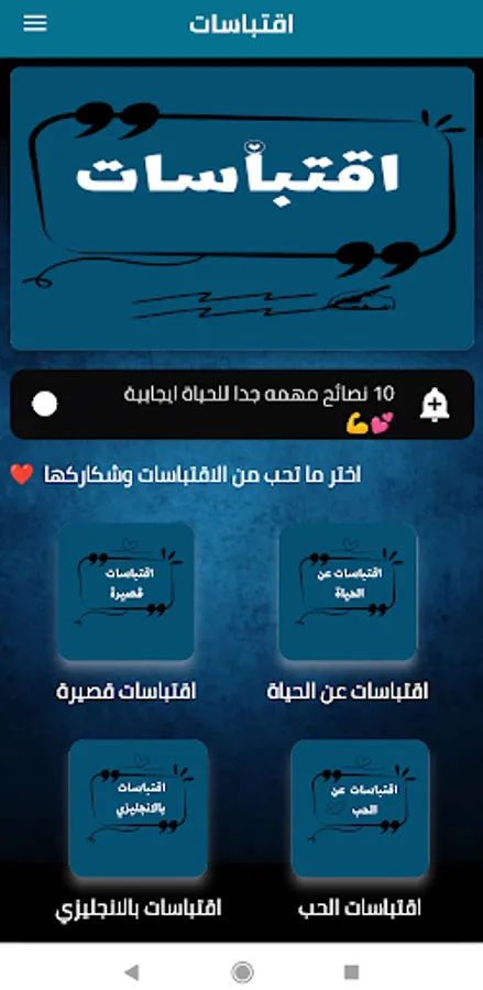Welcome to your app which we have placed in your hands to serve you and will admire you as the application of quotations offers you a lot of beautiful, varied and short quotations