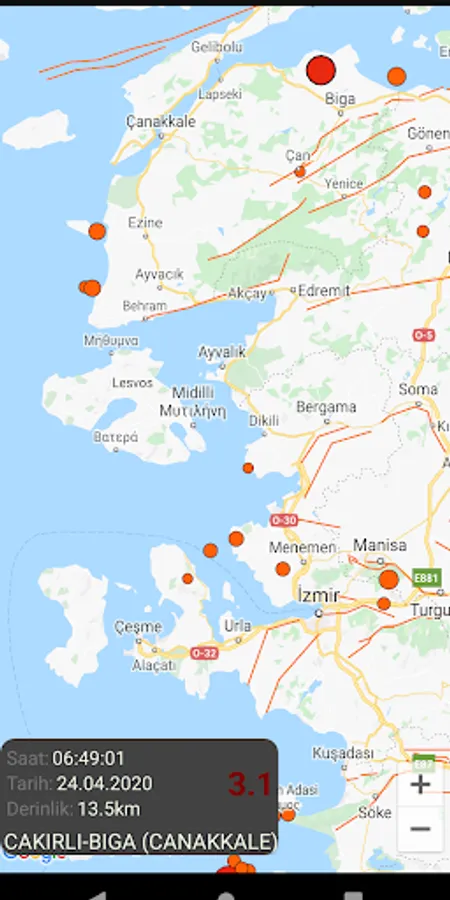 * When you click on one of the earthquakes in the Kandilli and AFAD tab, you can see the approximate location of some of the fault lines in Turkey on the map.