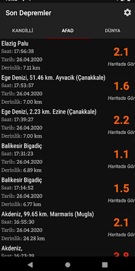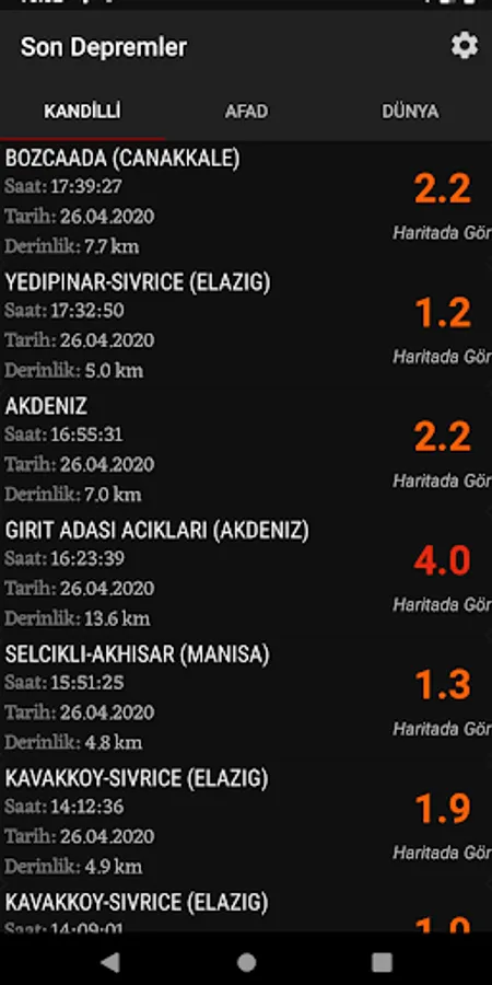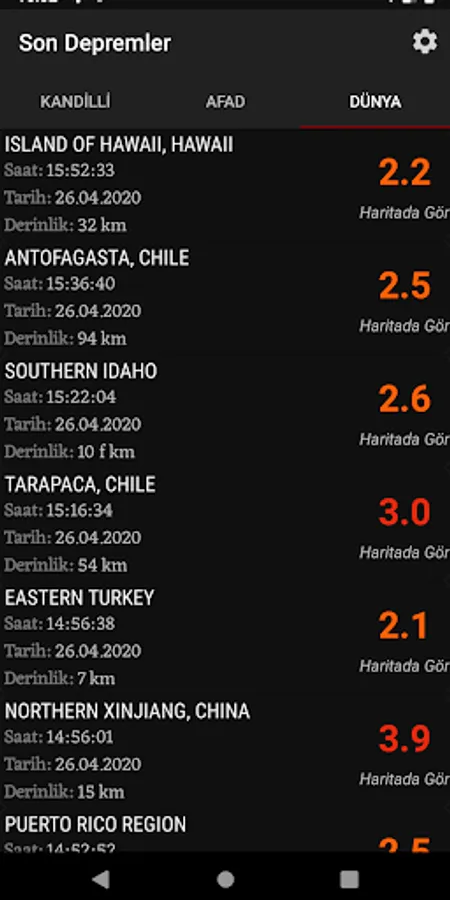 Recent Earthquakes; It is an application to follow current earthquakes.