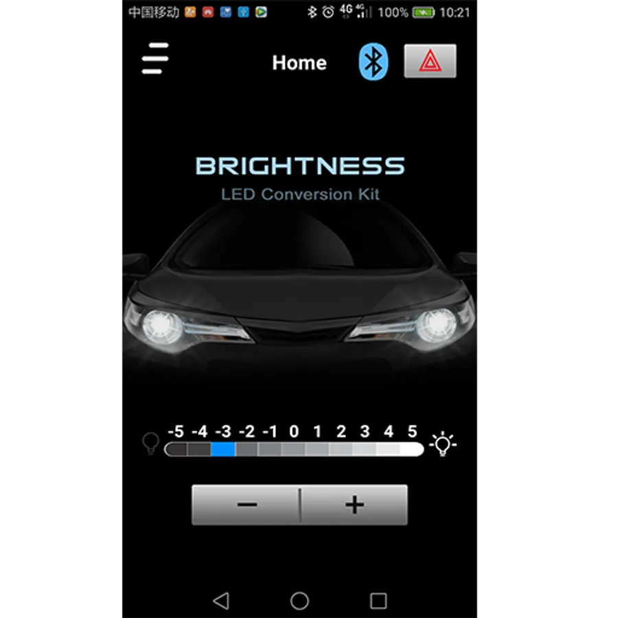 B. The App includes a Hazard Warning Light function, next to the Bluetooth symbol. Press the symbol to turn the flashing on/off. While Hazard Warning Light is turned on, user can adjust the brightness using the meter. The flashing lights brightness level will adjust on both the headlights on the vehicle and on the App. The brightness level will be saved once user turns off Hazard Warning Light.