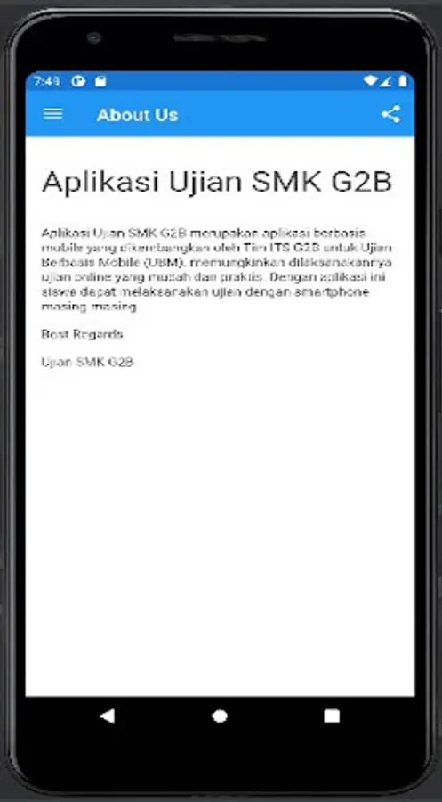 The G2B Vocational School Exam Application is a mobile-based application developed by the ITS G2B Team for Mobile-Based Exams (UBM).