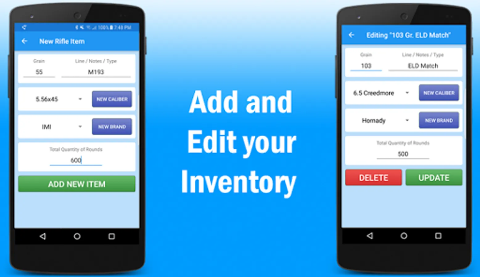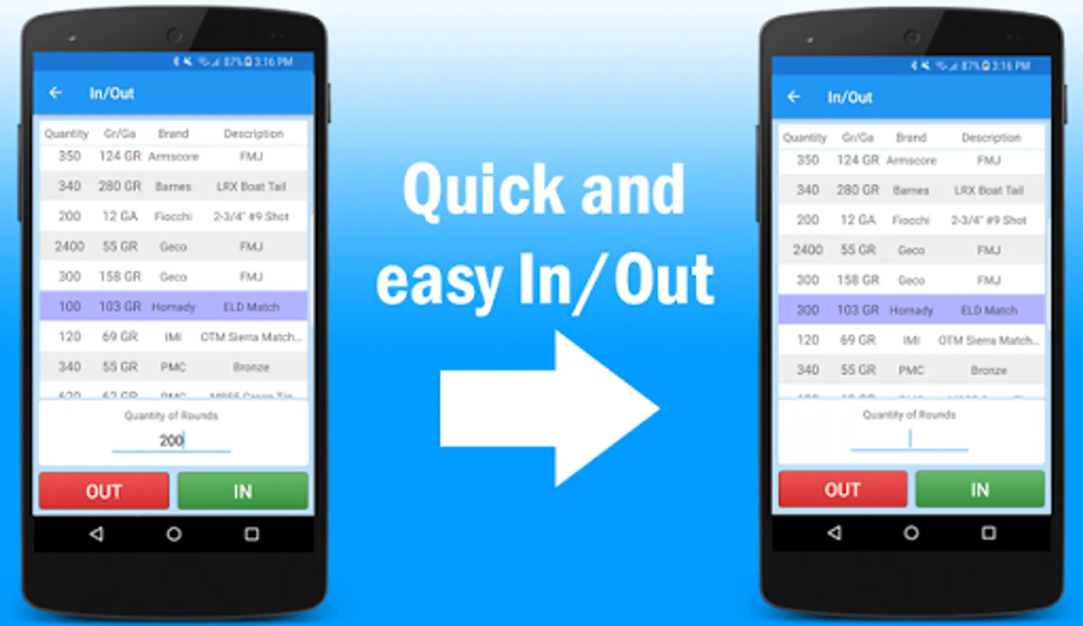 First, add items to the correct category of your choosing. It becomes quicker as you keep creating Brands and Calibers, and the In/Out feature allows for very fast quantity adjusting when you are busy at the store or the range.