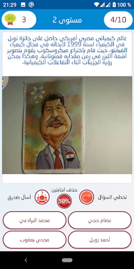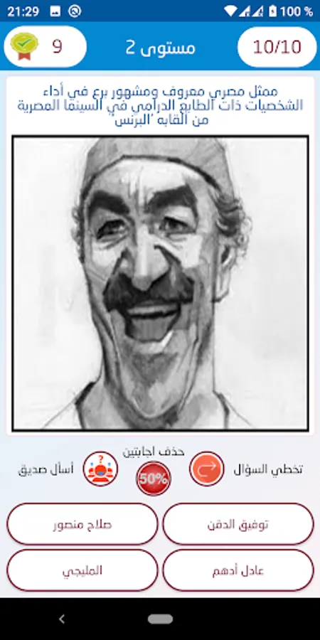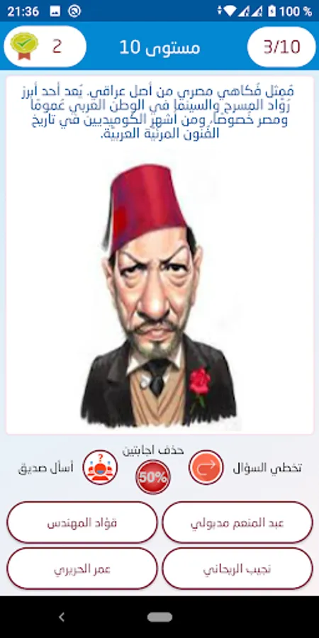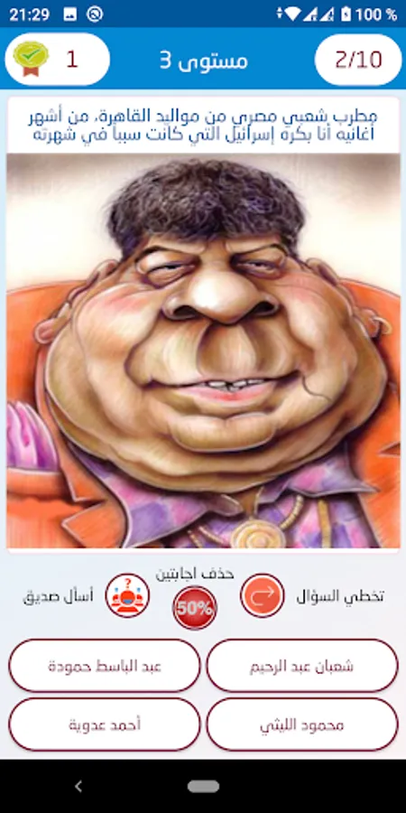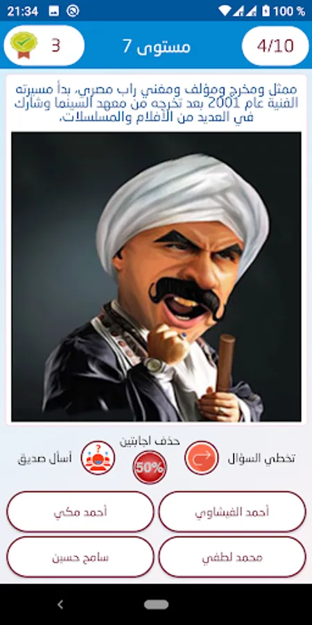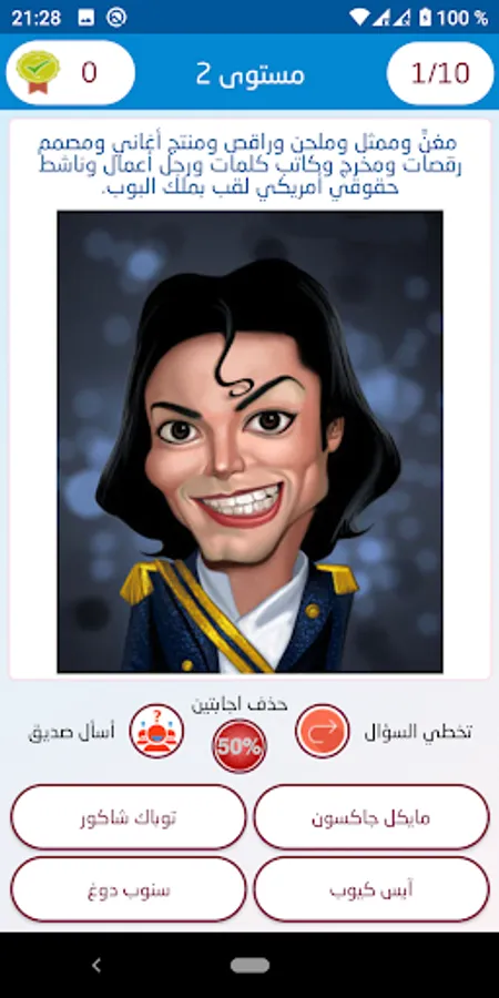 The questions are a caricature of a celebrity, giving a glimpse of the owner of the photo, then choosing from the four options.