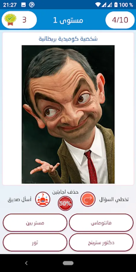 Comics and Question is a group of levels, each level 10 questions you must answer at least 5 questions to pass to the next level.