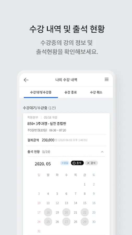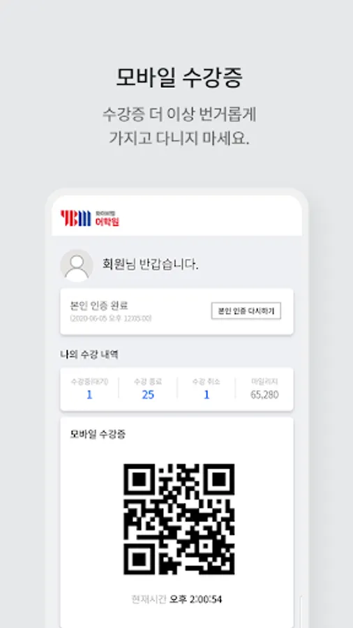Accurate attendance management, fever check record, YBM language school course registration, and English conversation level test are all available in the YBM language school app!