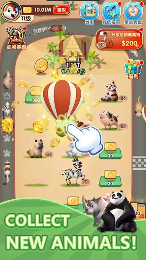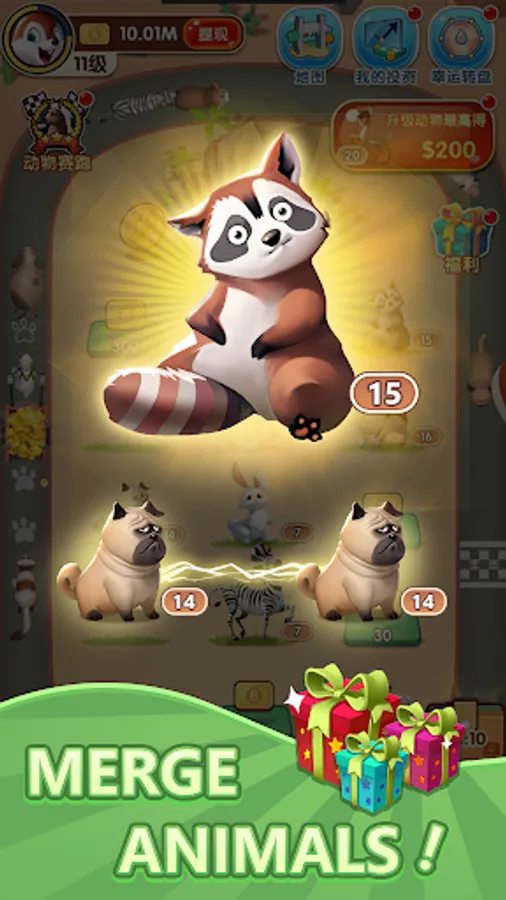 的王国,新的动物!只需购买动物并合并相同的动物即可解锁新动物。立刻来享受成为动物大亨的乐趣!