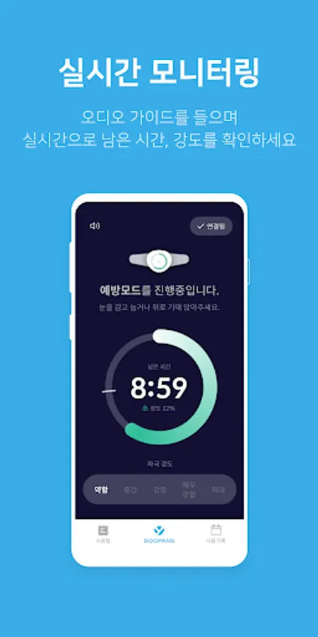 You can check the remaining time and real-time intensity in the Doupang Manager app, and an audio guide is provided.