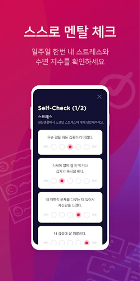 Once a week, ask yourself a quick question about your daily stress and your recent sleep. Check your stress and sleep index periodically and manage your mentals yourself.