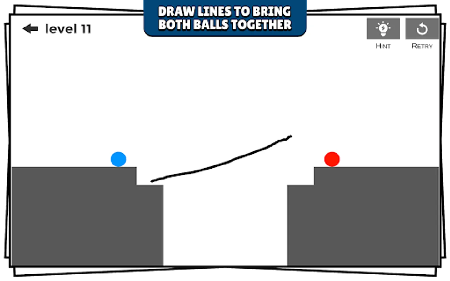 The aim is to draw lines and make a path to roll the balls to meet each other, solve puzzle & get them together
