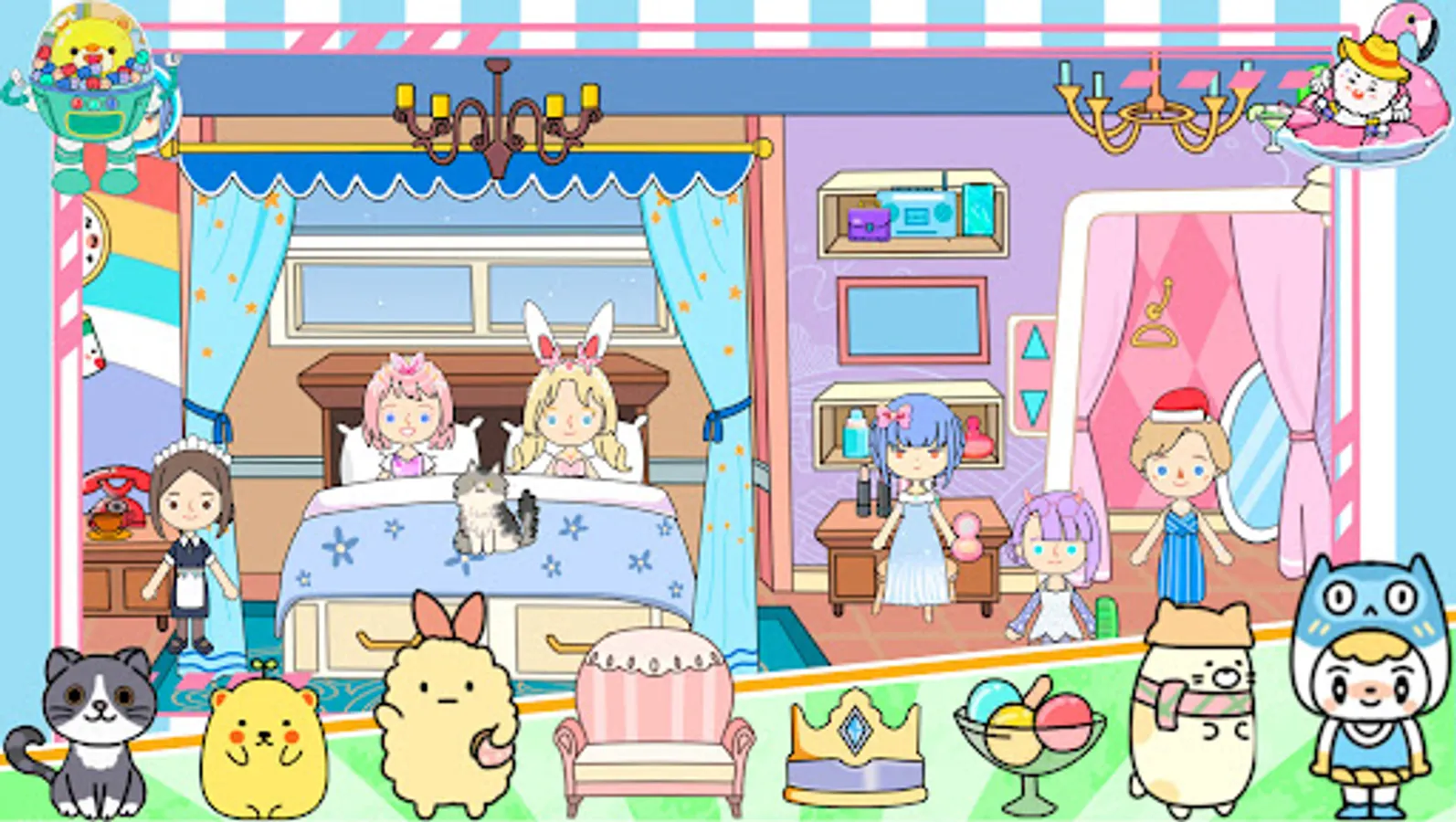 In YoYo Land:Princess Castle, find the key and open the door to the palace. There are more than a dozen scenes in the castle. You need to carefully find the arrow for guidance to unlock. Here, you can explore the mysterious palace, enjoy the delicious palace feast, sleep comfortably in a luxury bed or find the mysterious doll house with friends. You can play as much as you want without restrictions.