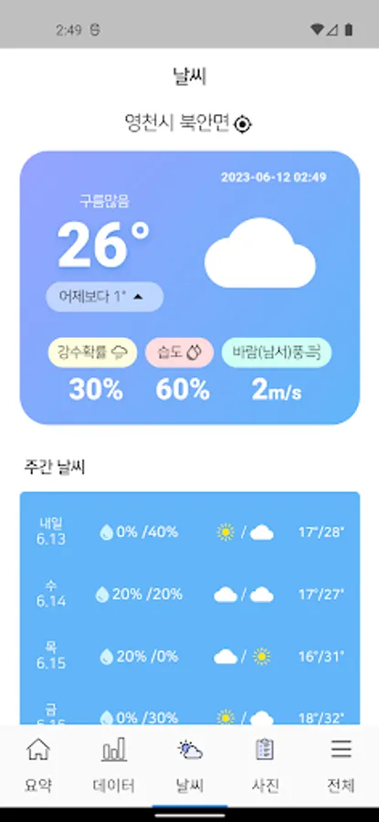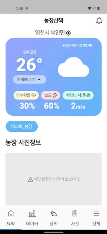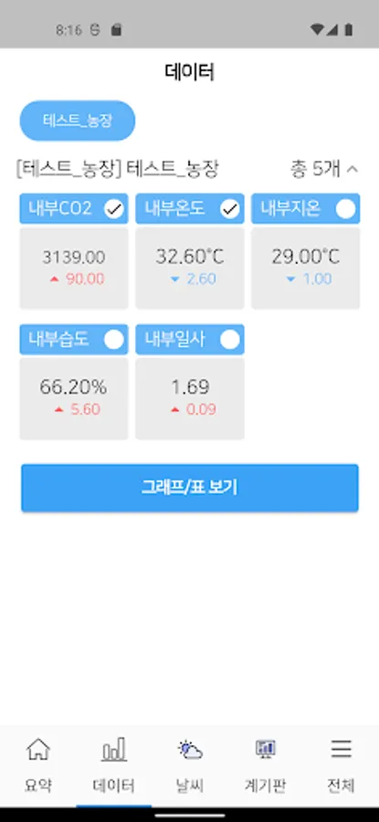 2. Check the temperature/humidity, CO2, solar radiation, etc. of the registered farm through the farming instrument panel.