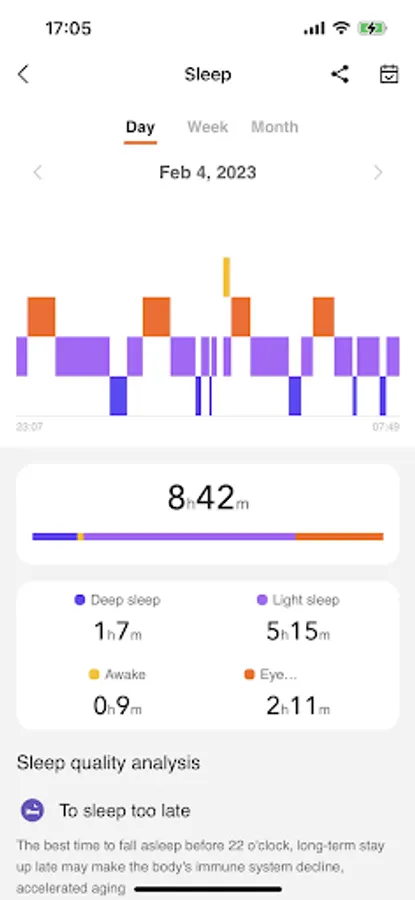 Enables sleep monitoring and analysis of sleep quality that can be shared.