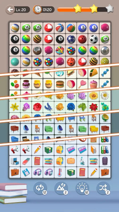 Start playing Onet Connect today – a legendary connection puzzle game loved by millions of players around the world! Search through a fun mix of images, find a pair that match, and connect them with up to three lines. When you clear a level, you will find new types of tiles to connect!