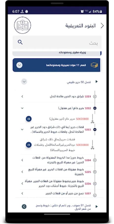  The application contains a detailed and arranged guide for all sections of the tariff items in a detailed and smooth manner, and it also contains a search feature on any item or commodity.