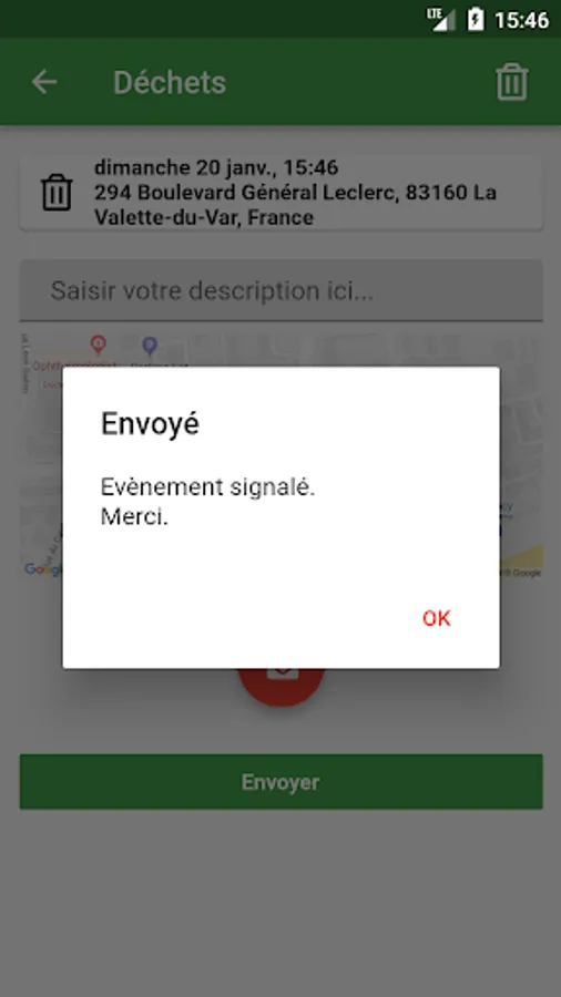 Your citizen alert sends the service in real time the place, time and event.