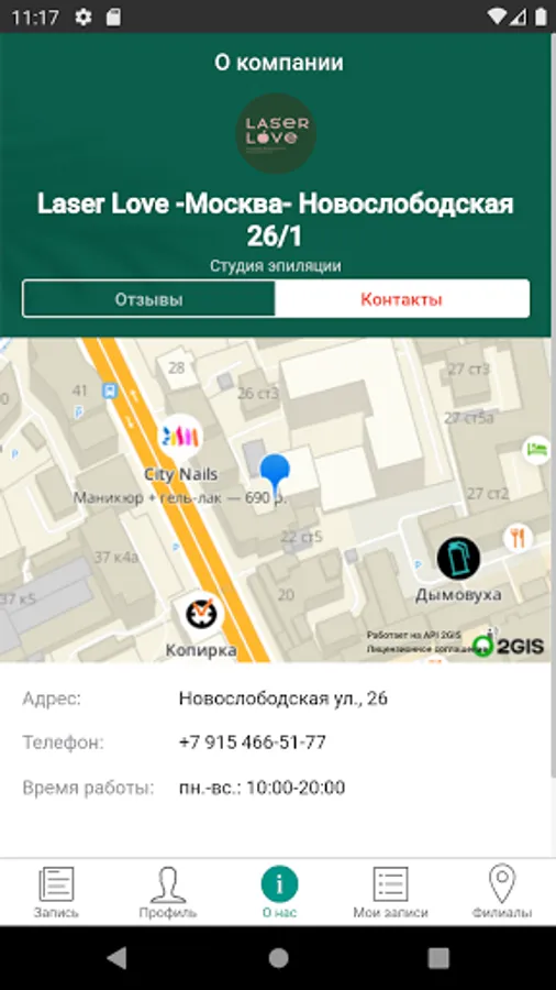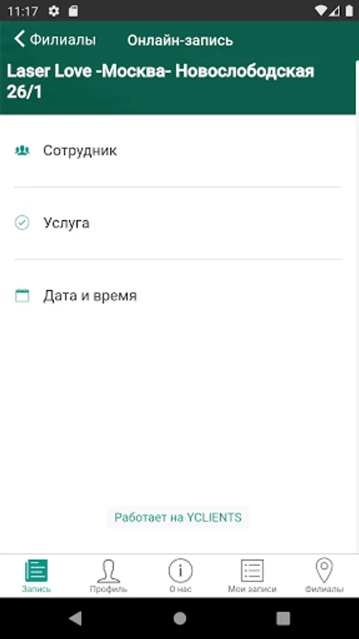 Install the application and sign up for the first service for free. Application for a network of hair removal studios. You can sign up for a convenient day and time, keep track of promotions and sales.