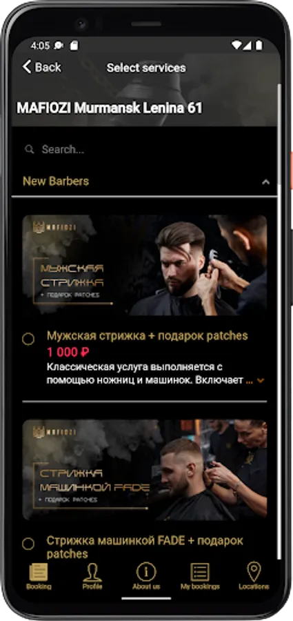 The MAFIOZI application is an easy way to book a haircut at any time of the day or night. Choose the nearest barbershop, service, masters, convenient date and time.