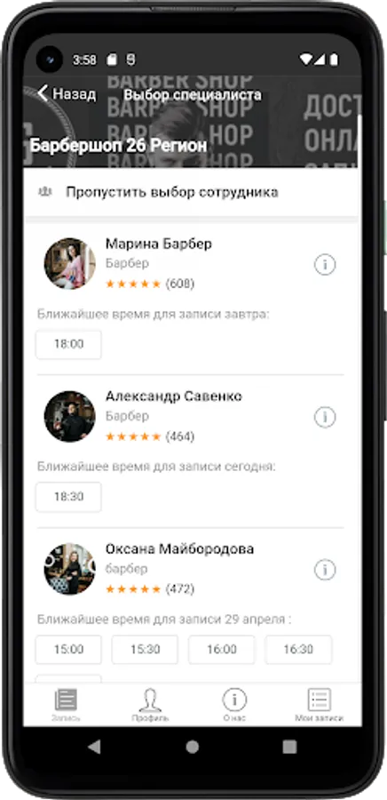 Barbershop 26 Region is more than a hairdresser, it is an interest club and a real men's territory, where a man can not only put his appearance in order, but also have a good time in a special atmosphere, enjoying the comfort of a cup of strong coffee or a glass of whiskey while playing in prefix, make a high-quality men's haircut and shape a beard.