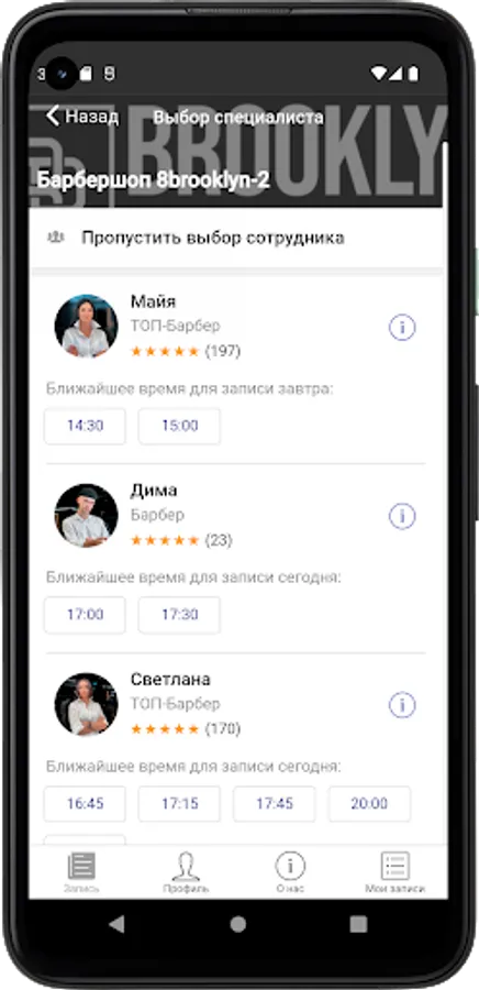 Choosing a master from a team of the coolest professionals;