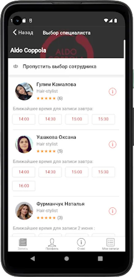 The premium class beauty and health center “ALDO COPPOLA BY NUR-SULTAN” located on the third floor of the Talan gallery is a creative space for creating luxurious images from the best stylists and make up artists of the capital. Along with a hairdressing salon, there are 2 beauty parlors at the guests' disposal, which represent such well-known brands as Biologique Recherche and Hydropeptyde, as well as an experienced dermatocosmetologist who performs all types of injection procedures. 3 nail service masters per shift are ready to take care of the beauty of the hands of the guests of the center, and an experienced podiatrist will give beauty and health to the legs. For the full creation of male images, a barber corner and a boutique of premium cosmetics for gentlemen are provided. The most sophisticated guests who prefer individual service will be offered to be served in VIP rooms on Japanese armchairs Takara Belmond, for maximum comfort in everything. A cup of coffee and more, guests will be treated to a bar from the best restaurant in the capital - Selfie.