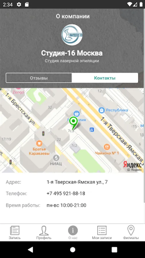 Studio-16 is a federal network of Laser Hair Removal salons located in large cities of our country. The priority task of our studio is not only to get rid of unwanted hair, but also to provide the highest level of service and keep the lowest prices for Laser Hair Removal services. To achieve a 100% result, we use only the latest generation of diode lasers. All equipment is undergoing service and monthly technical control. The masters of our studio have specialized education, all have completed advanced training courses in the field of cosmetology and regularly improve their knowledge and skills with the leading specialists of Laser Hair Removal. All the masters have at least 3 years of experience working on different lasers, and all of them have completed a master course from our laser developers at the manufacturing plant. For the convenience of our clients, we open our studios within walking distance of metro stations or major ground transportation hubs. The Studio-16 website contains detailed plans and descriptions with photographs for quickly finding our studios. In our work, we try to use digital technologies and the Internet as widely as possible to save our clients' time. The online recording system allows the client to choose a convenient time and place for the Laser Hair Removal procedure, and the SMS-informing system will promptly remind about the upcoming visit. And the client can confirm his visit 24 hours before the procedure with one click on his mobile device.