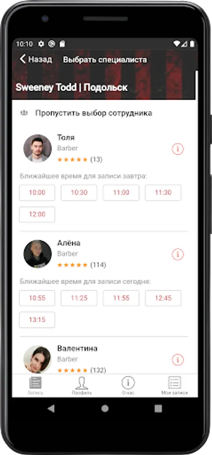 - simple and convenient entry to the barbershop to your favorite masters at any time 24/7;