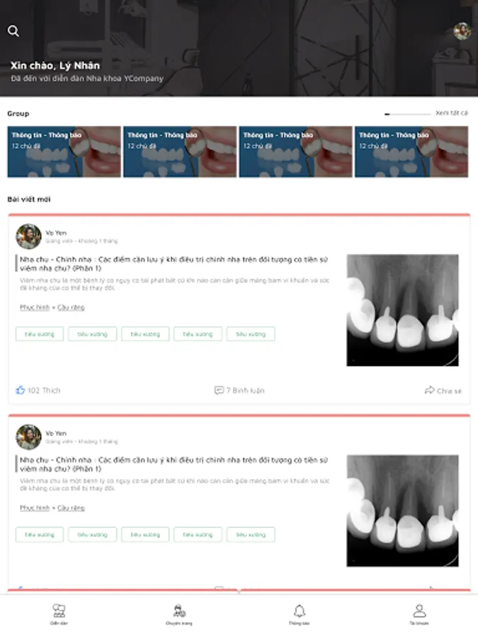 - Personal page: a place to edit personal information and post articles at the Medical Company Dental Forum.