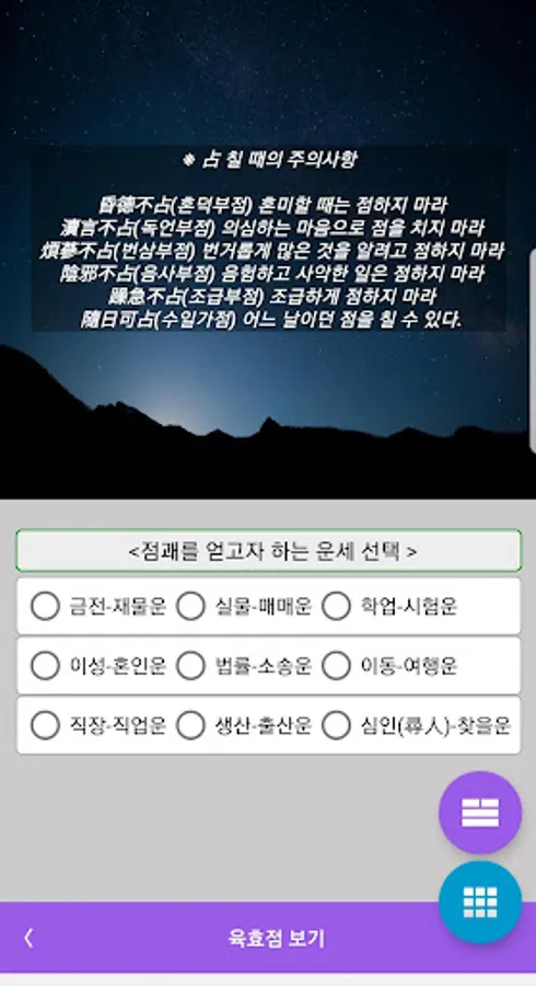 It is a method that Jegal Gongmyeong liked to use in decision-making and judgment, and it has a high hit rate. Compared to Western fortune-telling, Tarot fortune-telling, oriental mystical fortune-telling of the Six Effects has incomparable depth.