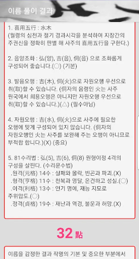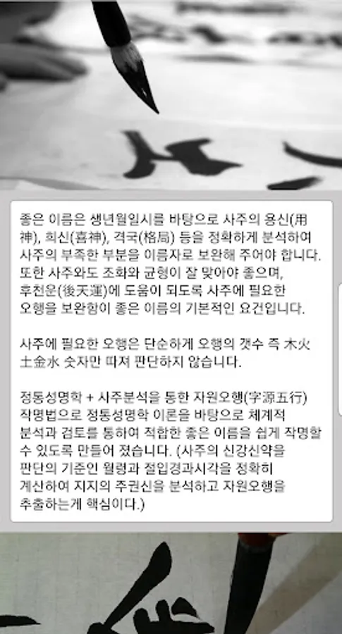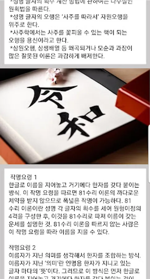 People are born with good fortune. However, a statement does not radically change a person's destiny. However, as it affects posterior luck, the view that Sung Myung-sak supplements the weaknesses of the four pillars should be given priority. In other words, it should be built in consideration of the innate destiny and the matching of the name. If yin and yang and the five elements are in harmony, seek the dragon god, and control the excess and deficiency of the innate energy well, a life that stands out more can be said to be guaranteed.