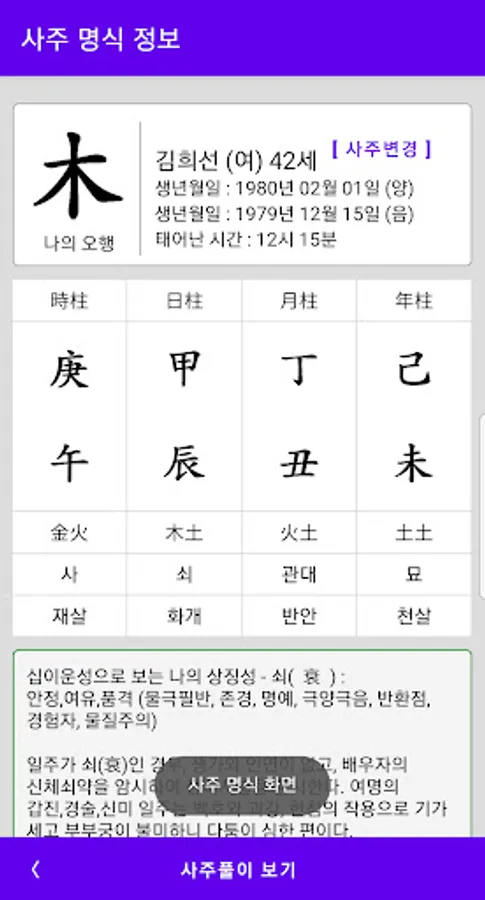 It is designed to make it easy for parents to name their child by themselves. All Chinese characters for human names are included, and when using the expert naming service, you can search for good Chinese characters that fit the four main characters, and find the five elements of the Chinese characters that complement the four main characters so that you can build them according to the name.