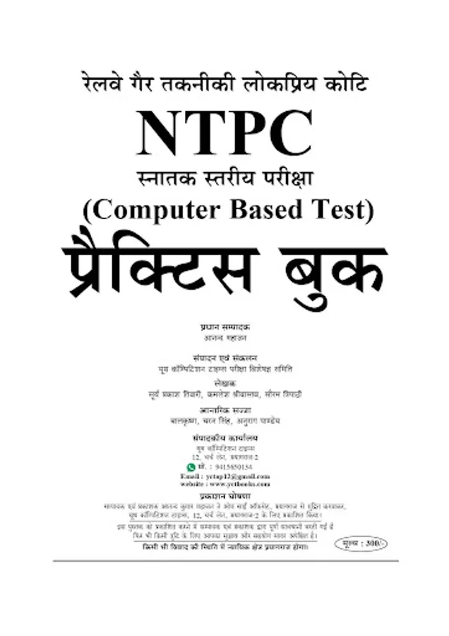 Yct expert team launches one of the best book named as RRB NTPC Online Exam for TA,ASM, GOODS GARD,JDA,TC,CC,SC Practice Book.