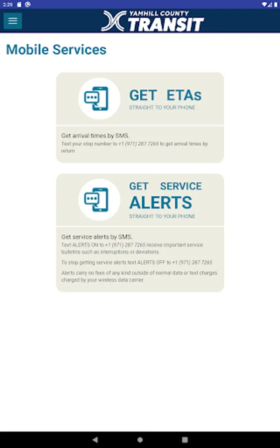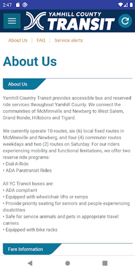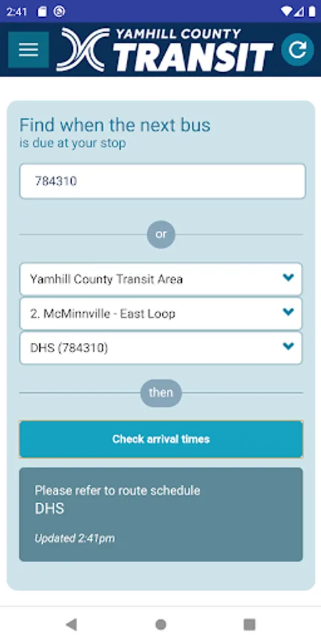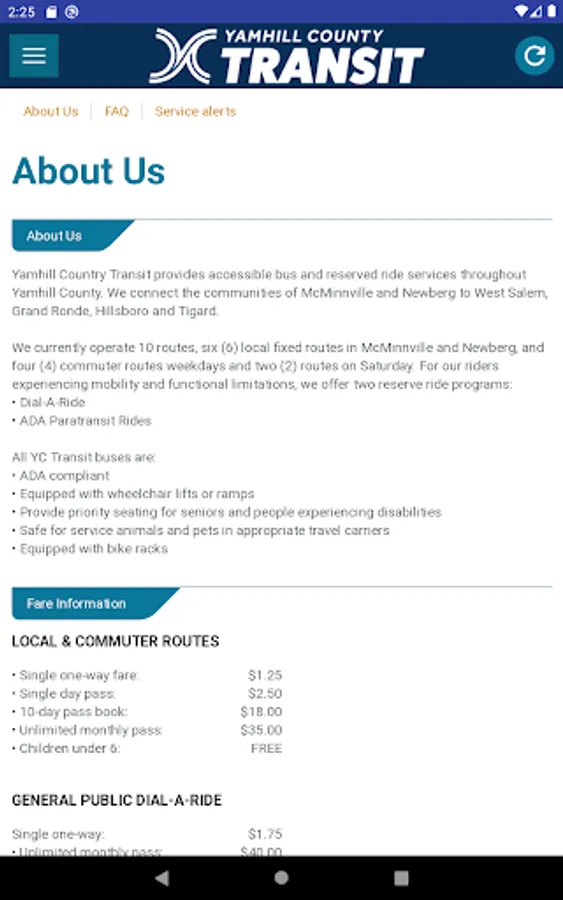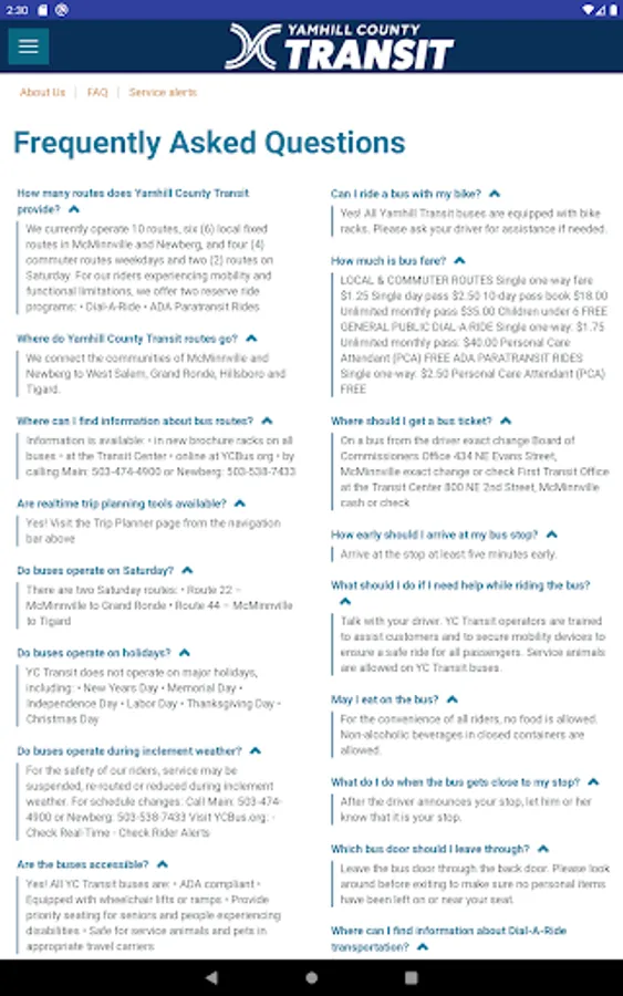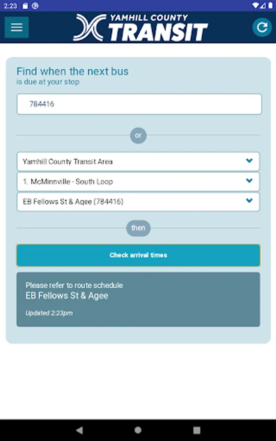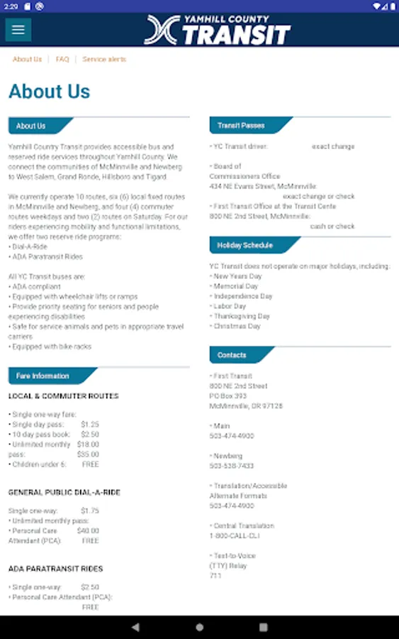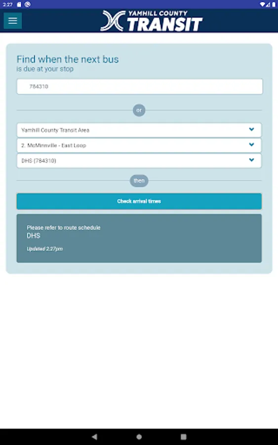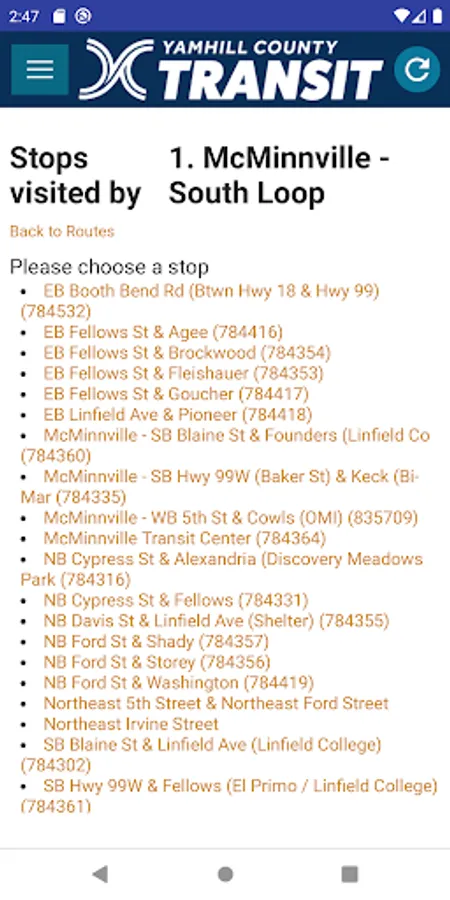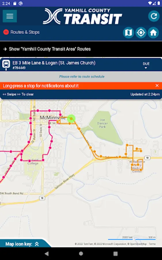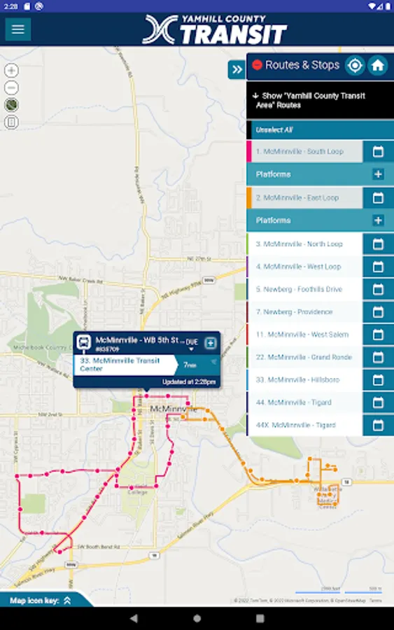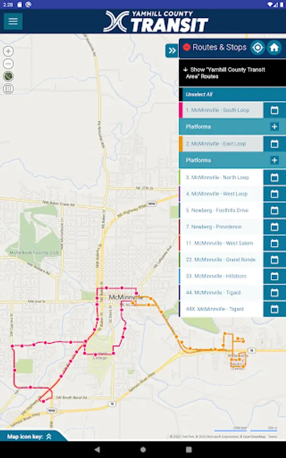 Find the nearest bus stop to your current location (requires GPS/location services to be enabled on your device), view an ETA for your bus and view its current position. Save your favorite stops and routes and access bus schedules. YCBus service, Yamhill County Transit.