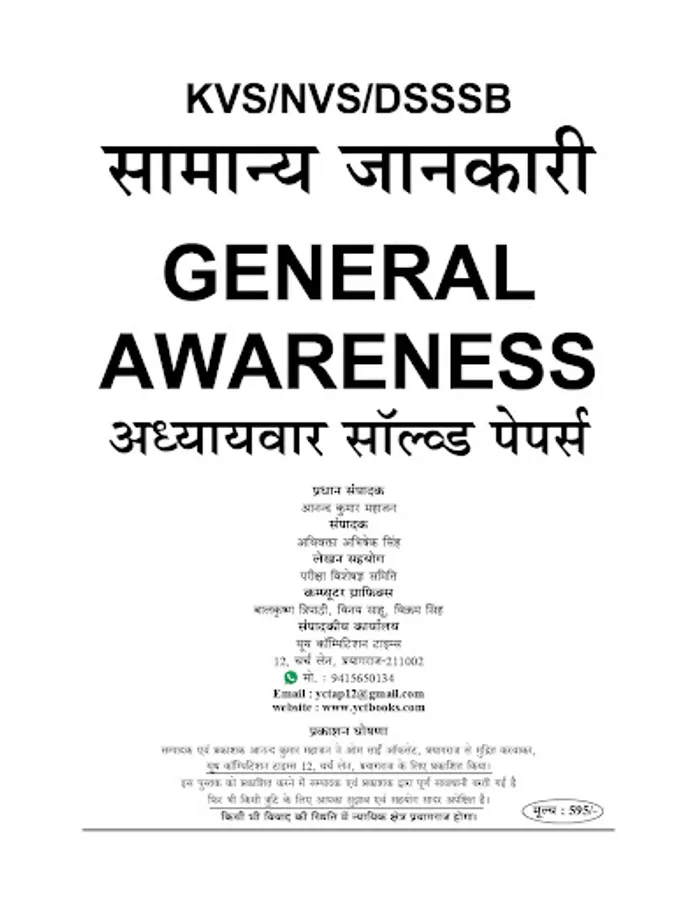 YCT expert team launches one of the best book named as KVS/NVS/DSSSB GENERAL AWARENESS & COMPUTER LITERACY CHAPTR-WISE SOLVED PAPERS
