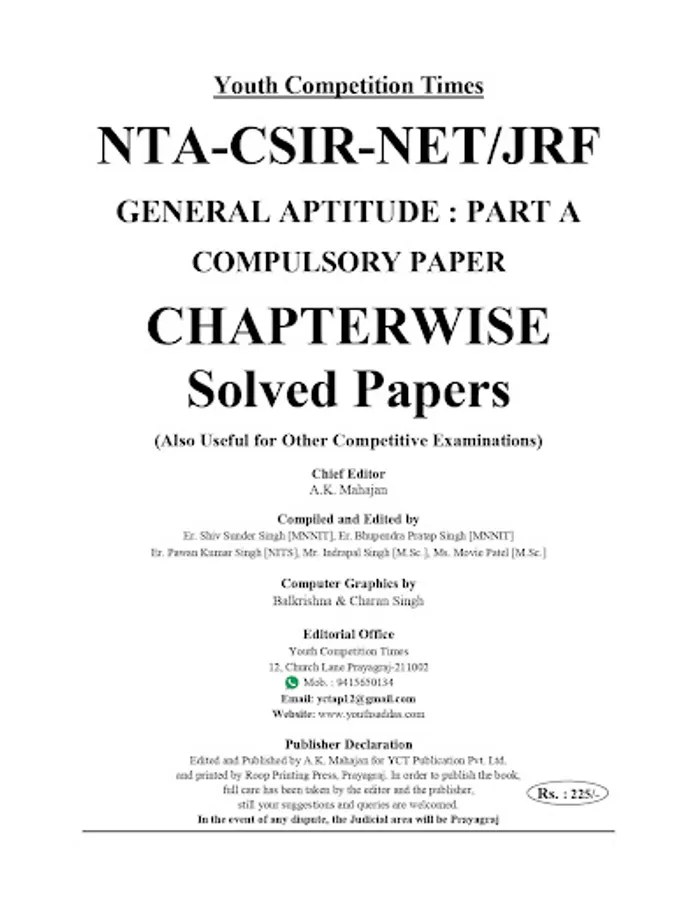 YCT expert team launches one of the best book named as NTA-CSIR-NET/JRF PART A: GENERAL APTITUDE COMPULSORY CHAPTERWISE Solved Papers
