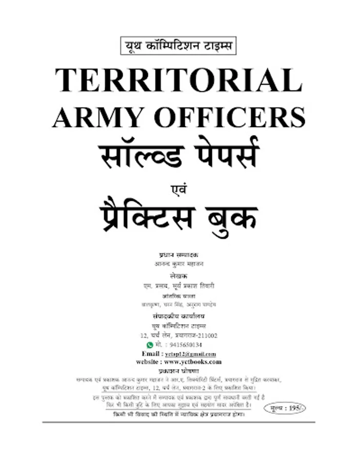YCT expert team launches one of the best book named as TERRITORIAL ARMY OFFICERS SOLVED PAPERS AND PRACTICE BOOK,