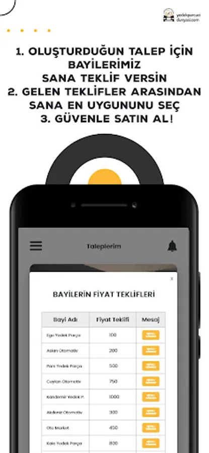 Then download Spare Parts World; Fill in your vehicle information, the information of the spare part you are looking for and your contact information from our unique ''Spare Part Request'' section. Let our dealers reach you; price, stock and compatibility information. Make the most suitable choice among the offers, and buy both new and second-hand spare parts with confidence. Moreover, it is fast, simple and free!