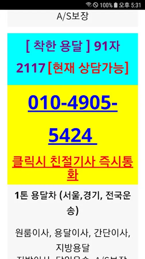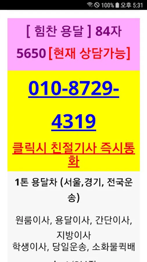 있으며, 소비자와 용달 기사님들이 직접 연결되기에 365일 24시간
