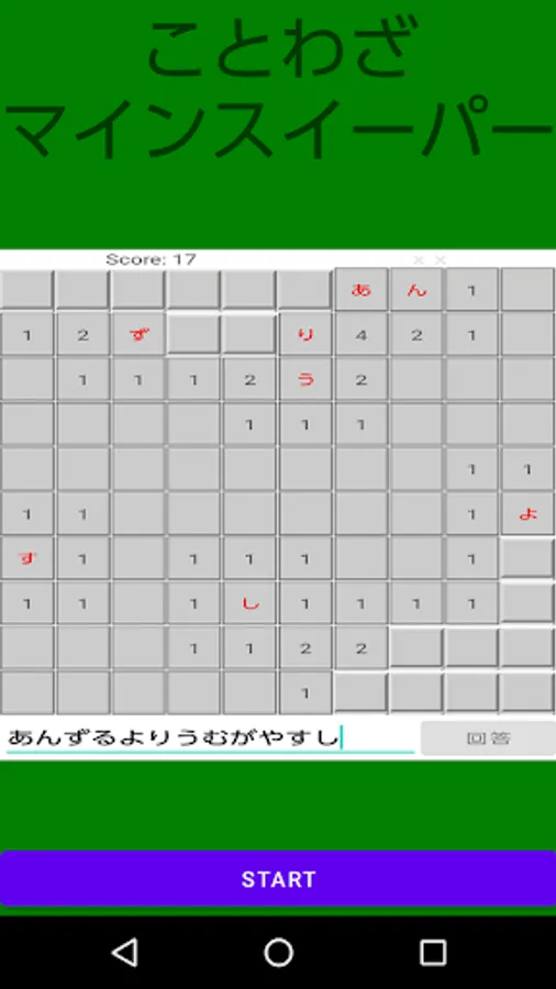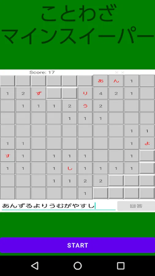 In Minesweeper, if you pull a bomb, the game is over, but this game has letters instead of bombs, so you pull it backwards and combine them to make a proverb.