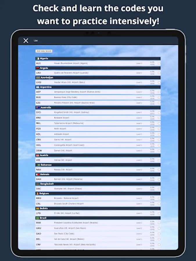 You can check off airports and airlines you want to practice intensively and learn them repeatedly.