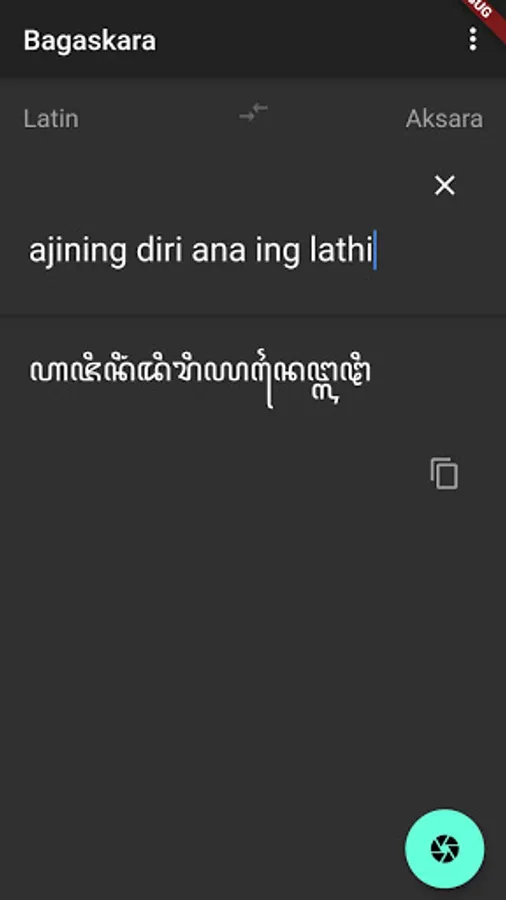 This app created can translate latin to Javanese script and backwards. Also you can scan from the camera (note: only works for simple and very clear image).