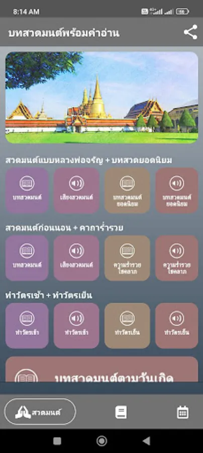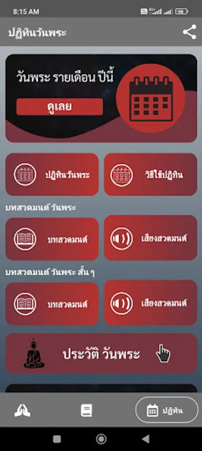 Prayer and worship app You can turn off the screen and listen to the chanting. Therefore, it is suitable for listening to Dhamma sounds while doing other activities. There are also prayers for you to read and chant along with ease.