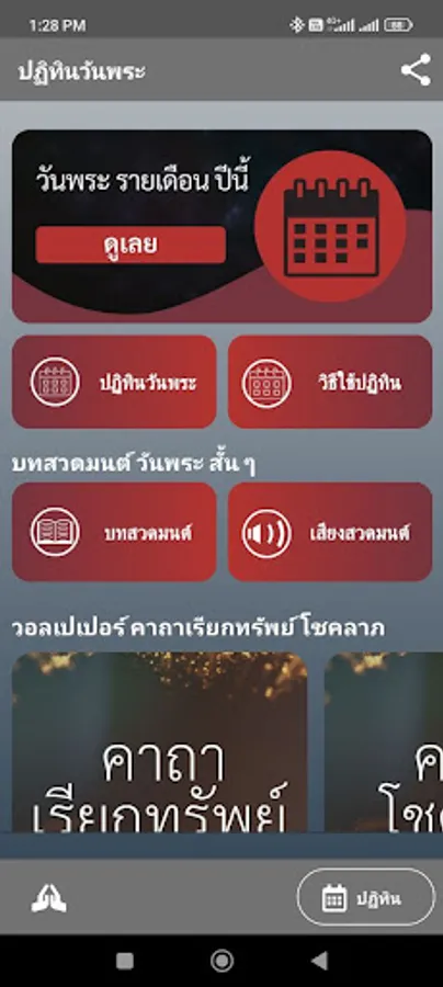 Add prayers for prayers on Buddhist holy days There are words to read along with prayers and audio leading the prayers. There are prayers as follows:
