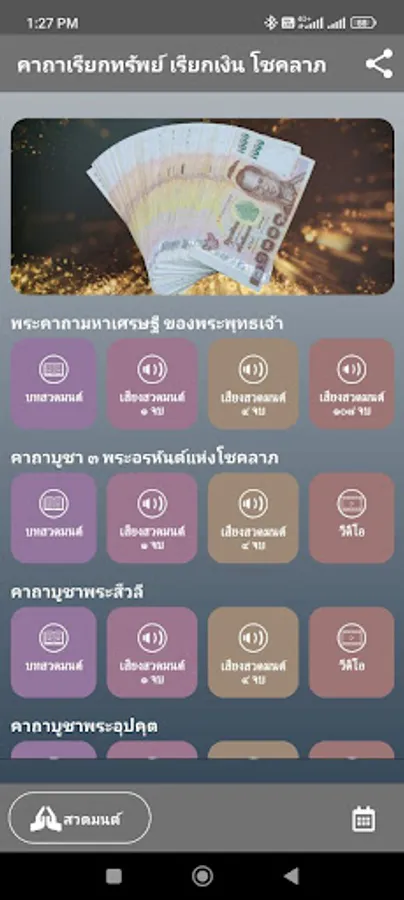 online prayer app Collection of auspicious spells that attract money and fortune. Therefore, it is suitable for those who have a career in trading. Including those who want to receive good luck in terms of money. With the following mantras: