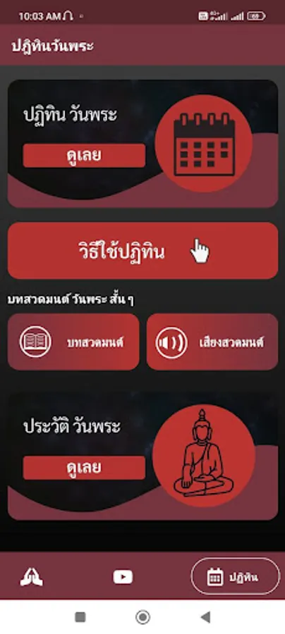 - Add prayers for praying on Buddhist holy days There are words read with chants and chanting audio. There are the following prayers:
