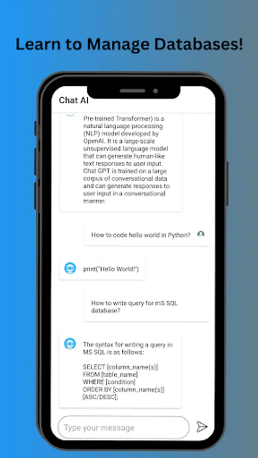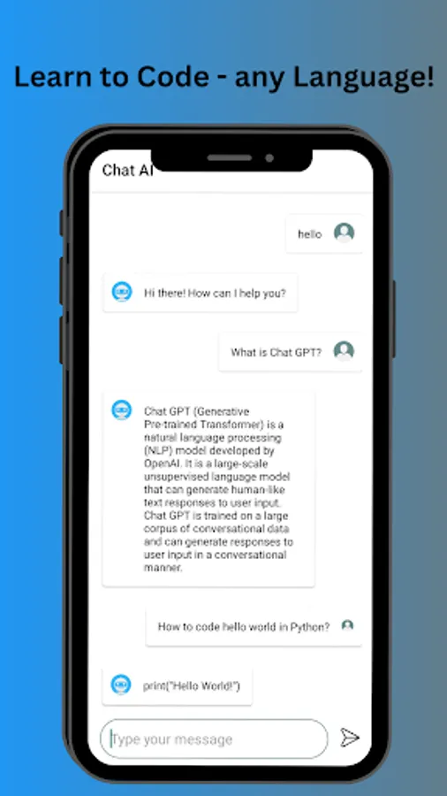 "Chat AI," based on ChatGPT is the most advanced and free chatbot available on Google Play, lets you experience the future of AI. Get it now and start chatting with the most intelligent AI available, built on the power of GPT-3 and ChatGPT!